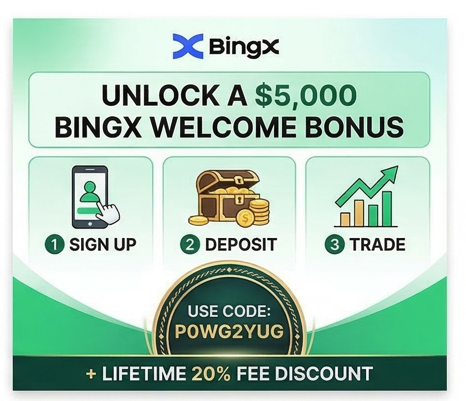 By using the exclusive BingX referral code [ P0WG2YUG ], you can instantly unlock a lifetime 20% discount on all trading fees and claim a massive welcome bonus of up to 5,000 USDT.